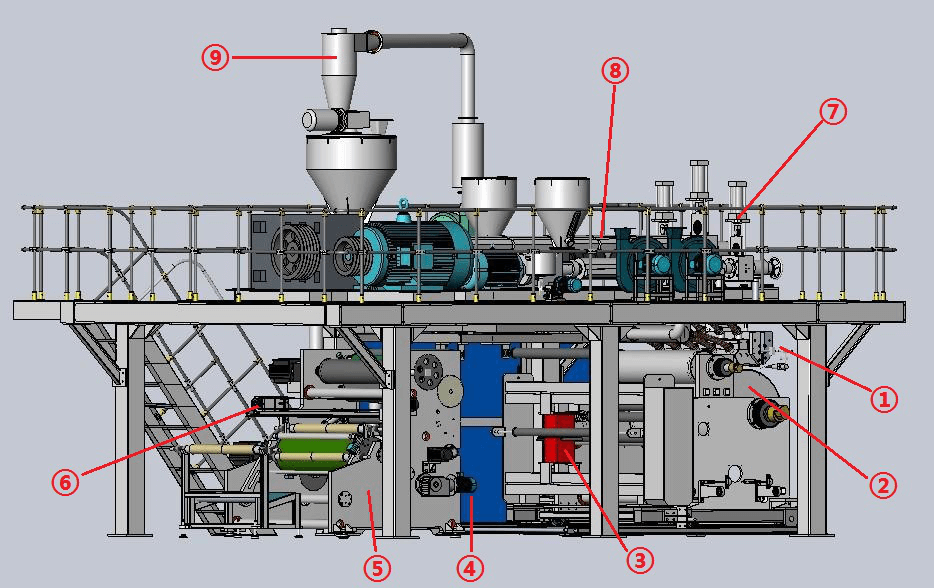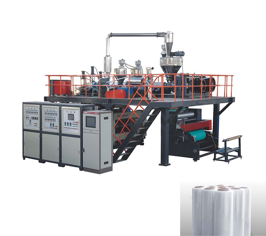 一般來說,纏繞膜的層數(shù)越多,纏繞膜韌性更強。而這個機型采用三條螺桿擠出,最多可以實現(xiàn)7層纏繞膜的生產(chǎn)。